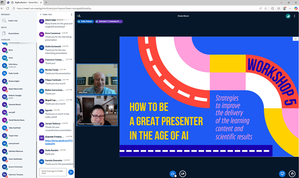 An online workshop on the ACROSS project was held at the University of Ruse on the topic: "How to be a great presenter in the era of AI - Strategies to improve the delivery of the learning content and scientific results" on September 12th. The event was organized by Associate Professor Orlin Petrov, PhD and Professor Ivaylo Stoyanov, PhD from the University of Ruse together with Professor Gerardo Boto, PhD and Professor Robert Marti, PhD from the University of Girona, Spain. The seminar was held in accordance with the activities of TASK 3.3 KNOWLEDGE SHARING GRADUATE SCHOOL and brought together over 100 participants from the ten partner universities. More than 20 lecturers and doctoral students participated from the University of Ruse.